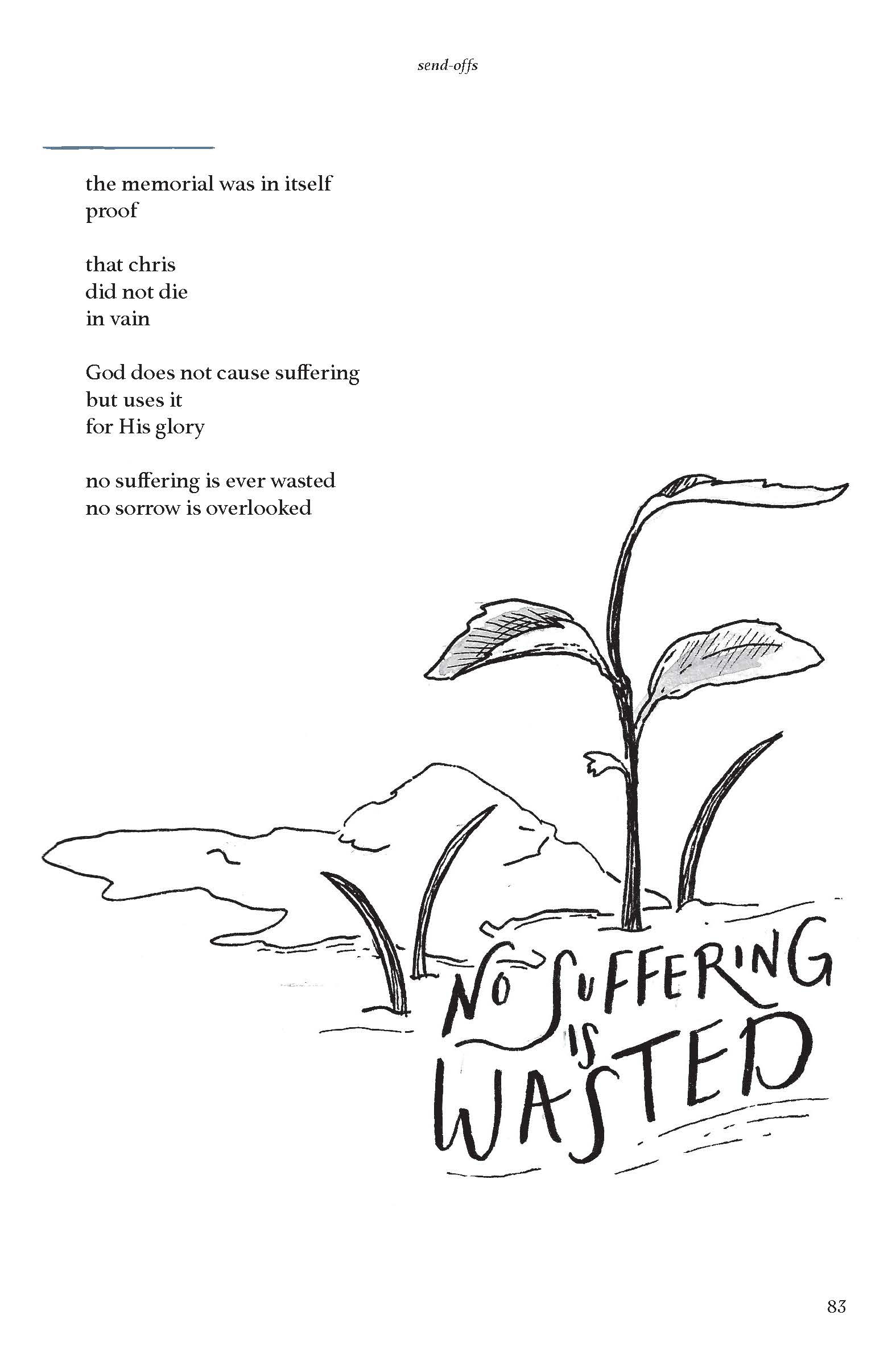 A book of poems written to process the loss of a loved one. It is designed, typeset, and illustrated to reflect the tension of pain and peace.